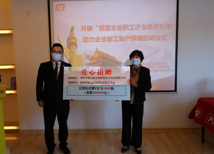 儀式上,大智泰安區(qū)域為泰山區(qū)民營企業(yè)子女捐贈價值28萬元大智公開課。張玲一行對此次捐贈活動給予了高度認(rèn)可,對大智的社會責(zé)任擔(dān)當(dāng)給予高度贊揚。泰山區(qū)組織部、泰安市電視臺對活動做專項報道。