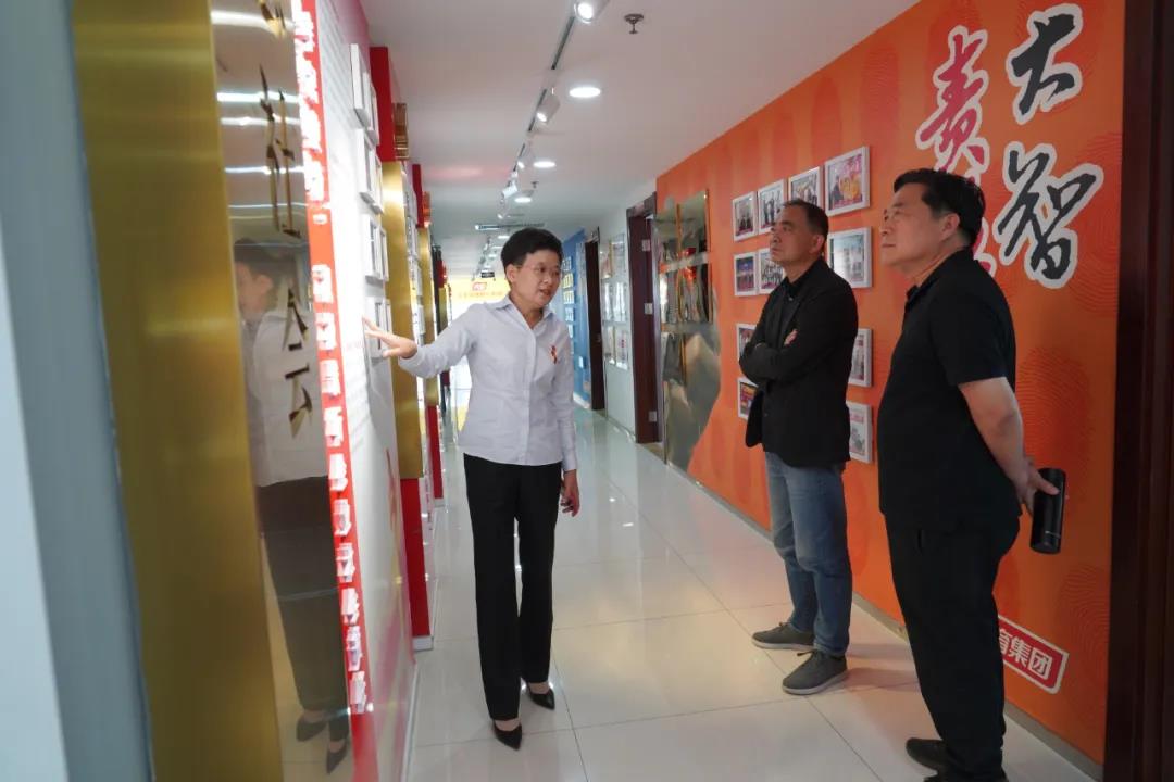首先,王現(xiàn)芹詳帶領(lǐng)大家參觀了黨建長廊,詳細介紹了大智組織架構(gòu)、企業(yè)文化等相關(guān)情況,以及“智惠黨建一三九”黨建工作模式,黨建引領(lǐng)下的“一帶一促”群團建設(shè)理念和“智惠+”群團建設(shè)模式。
