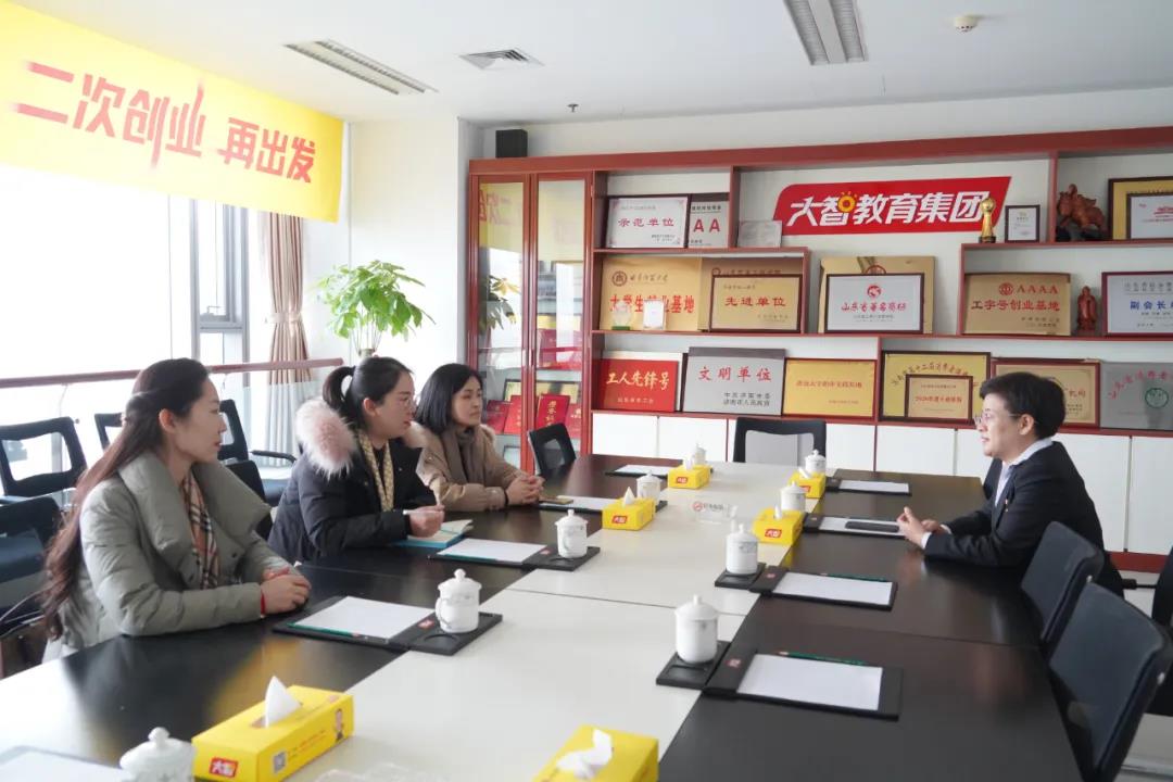 2月26日下午,北京同仁堂濟(jì)南分公司黨支部書記田蕾,北京同仁堂濟(jì)南分公司負(fù)責(zé)人周洪萍,中車山東公司財務(wù)部組織委員、工會主席胡曉明來大智總部交流學(xué)習(xí)黨建工作。大智教育集團(tuán)黨委書記王現(xiàn)芹熱情接待。