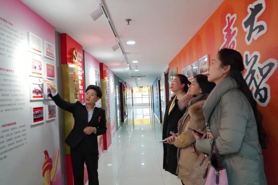首先,王現(xiàn)芹帶領(lǐng)大家參觀了黨建長廊,詳細(xì)介紹了“智惠黨建一三九”工作模式,以及大智發(fā)展情況。