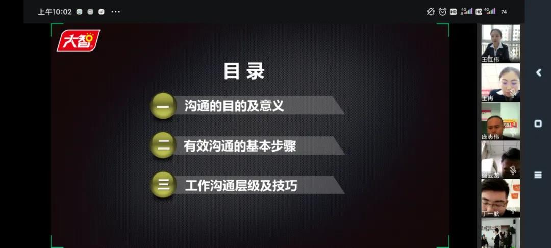 2月26日上午,大智教育集團黨委書記王現芹為大智黨員們帶來“向陽計劃”培訓第二講精彩內容分享——《管理就是溝通》。部分黨員現場參加培訓,其他各區(qū)域(公司)的黨員們通過視頻連線的方式參加培訓。