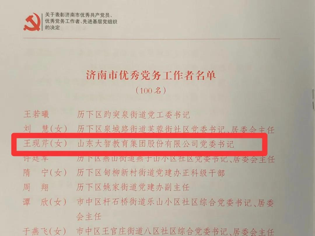 大智黨委書記王現(xiàn)芹榮獲“優(yōu)秀黨務(wù)工作者”稱號(hào)