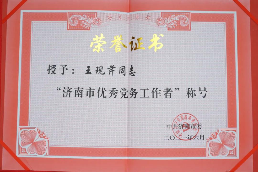 在黨建工作中,王現(xiàn)芹創(chuàng)造性提出了“黨務(wù)支持業(yè)務(wù),業(yè)務(wù)反哺黨務(wù)”黨建工作理念,在實(shí)踐探索中形成了“智惠黨建一三九”工作模式,實(shí)現(xiàn)黨建工作與企業(yè)發(fā)展同推共進(jìn);創(chuàng)建“智惠e”公益品牌,積極踐行社會(huì)責(zé)任;積極承辦濟(jì)南市民營經(jīng)濟(jì)高質(zhì)量發(fā)展服務(wù)隊(duì)的“百+黨建工程”,協(xié)助近百家民營企業(yè)建立黨組織,提升黨建工作水平。