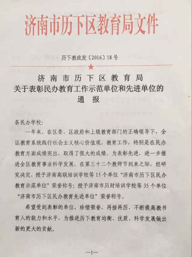 日前,濟(jì)南市歷下區(qū)教育局下發(fā)《濟(jì)南市歷下區(qū)教育局關(guān)于表彰民辦教育工作示范單位和先進(jìn)單位的通報》,大智憑借優(yōu)質(zhì)的教學(xué)服務(wù)、規(guī)范的教學(xué)管理以及優(yōu)異的教學(xué)成績榮獲“濟(jì)南市歷下區(qū)民辦教育示范單位”榮譽(yù)稱號。