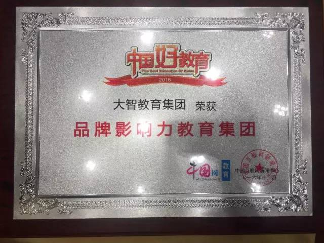 大智再次榮膺“中國好教育-2016年度品牌影響力教育集團”