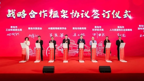 在第60·61屆中國高等教育博覽會交接儀式上,山東省高等教育學(xué)會等4個單位獲得突出貢獻(xiàn)獎,中國海洋大學(xué)等16所學(xué)校獲得優(yōu)秀組織獎。中國高等教育學(xué)會與青島市教育局等5部門簽訂了戰(zhàn)略合作框架協(xié)議。