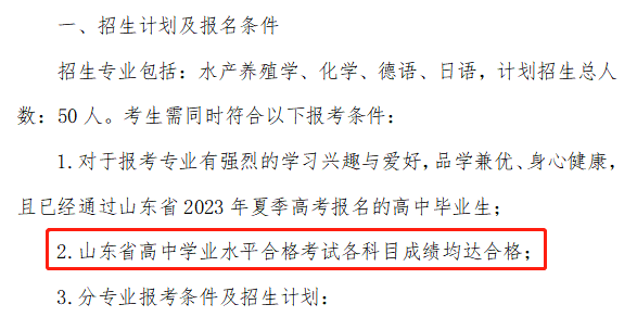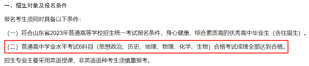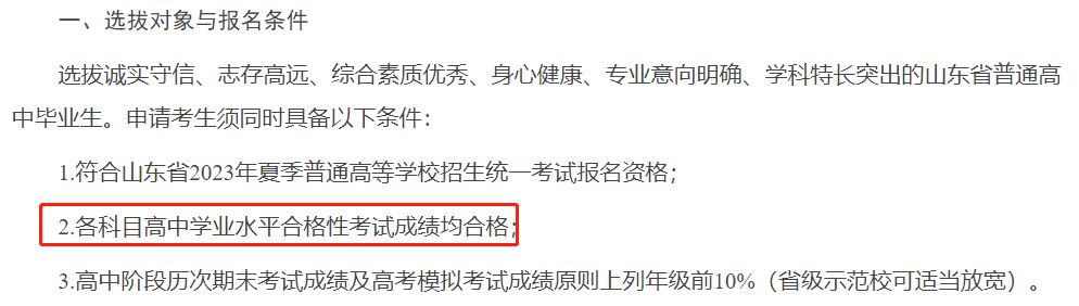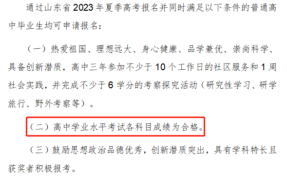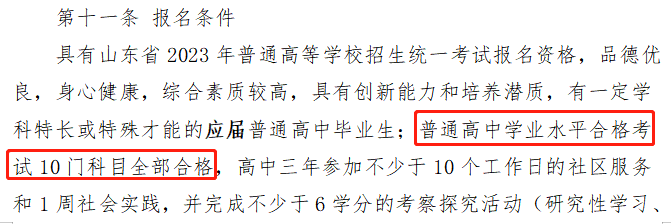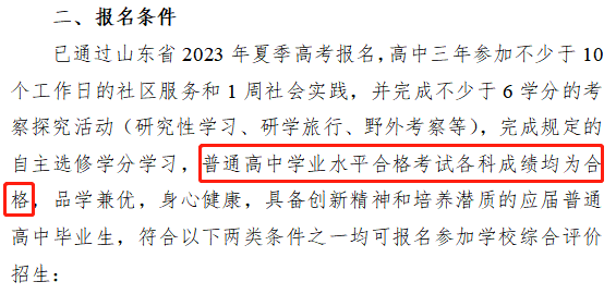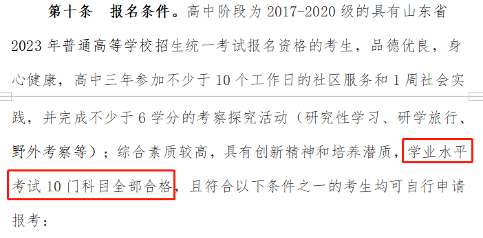 ?青島大學:在2023年綜合評價招生的報名條件中有明確的規(guī)定,普通高中學業(yè)水平合格考試10門科目全部合格。