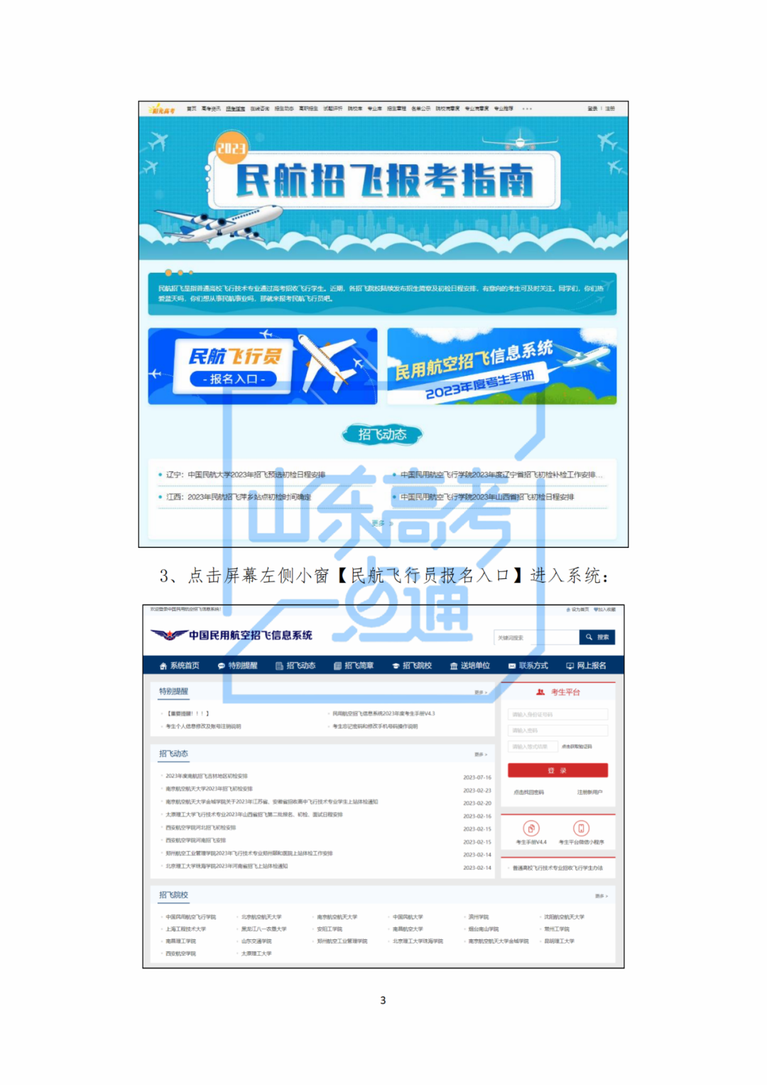 教育部陽光高考平臺是中國民用航空招飛信息系統(tǒng)唯一入口!您可打開“教育部陽光高考平臺民航招飛報考指南”(https://gaokao.chsi.com.cn/gkzt/mhzf),點擊“報名入口”進(jìn)入招飛系統(tǒng)。所有招飛相關(guān)的信息將會發(fā)布在教育部陽光高考平臺、民航招飛系統(tǒng)、有關(guān)省級招辦和考試院、招飛院校、航空公司的官方網(wǎng)站上,其他信息來源請仔細(xì)甄別、謹(jǐn)慎采納。