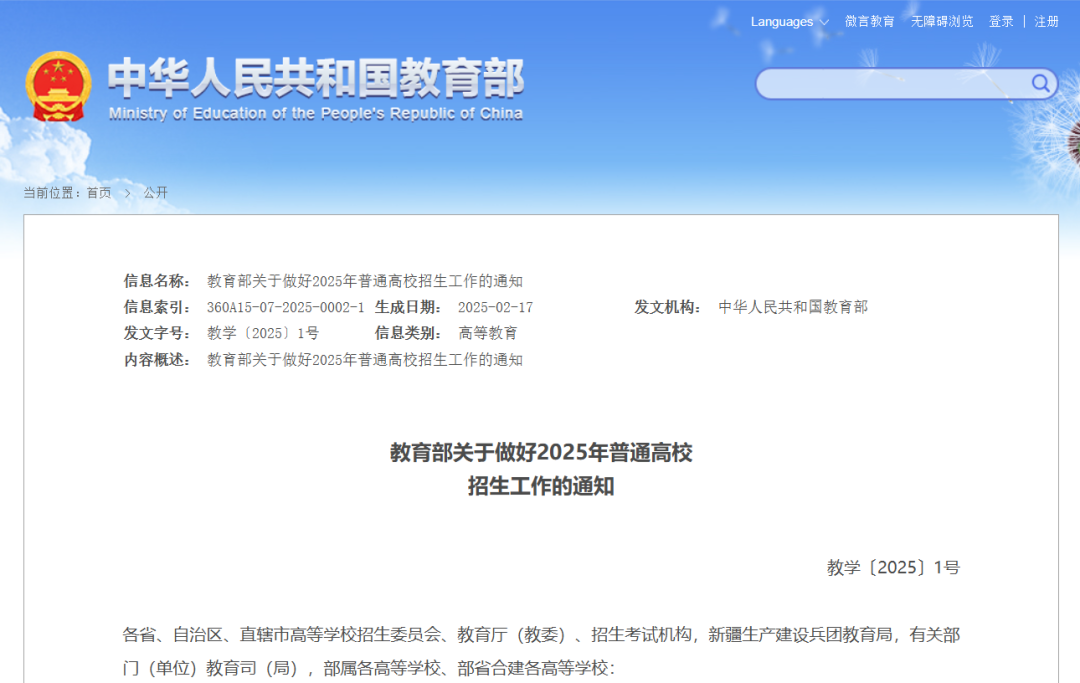此前,教育部發(fā)布了《教育部關(guān)于做好2025年普通高校招生工作的通知》(點擊查看),其中提到了2025年全國高考統(tǒng)一考試時間安排。同時公布了《...