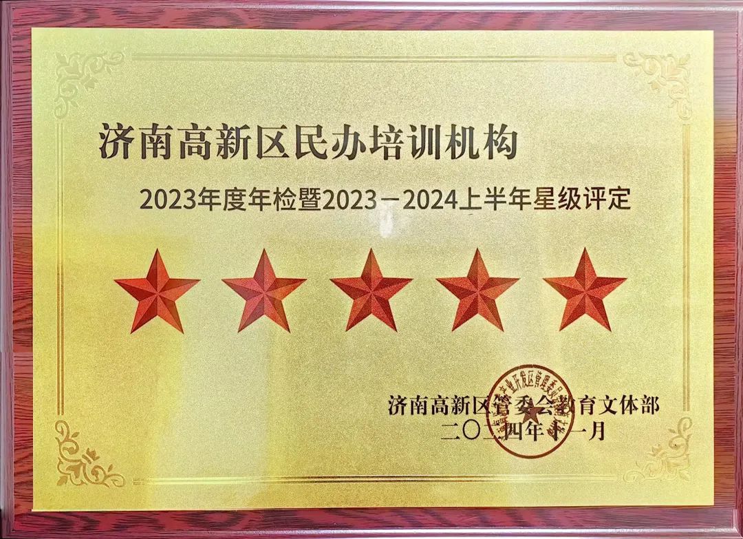 近日,大智高新分校在濟(jì)南市高新區(qū)民辦培訓(xùn)機(jī)構(gòu)2023年度年檢暨2023-2024上半年星級(jí)評(píng)定中獲得五星好評(píng)。