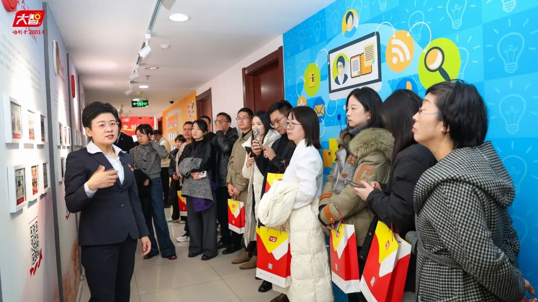 王現(xiàn)芹帶領(lǐng)大家參觀了黨建長廊,詳細(xì)介紹了大智組織架構(gòu)、企業(yè)文化等相關(guān)情況,以及“智惠黨建一三九”黨建工作模式,黨建引領(lǐng)下的“一帶一促”群團(tuán)建設(shè)理念和“智惠+”群團(tuán)建設(shè)模式。