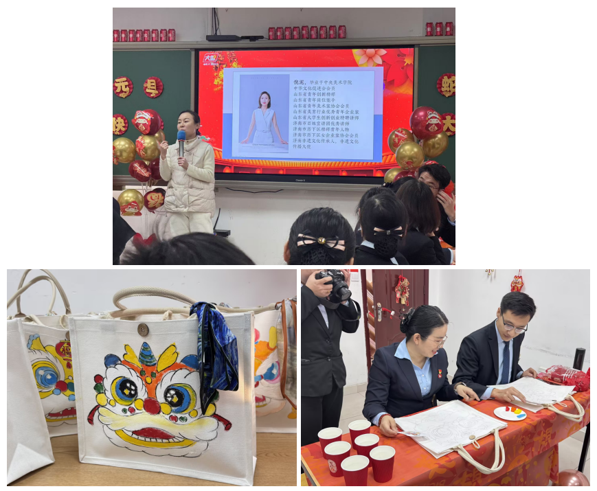 本次活動(dòng)也特意邀請(qǐng)到濟(jì)南畫歌畫室的團(tuán)隊(duì)老師,為團(tuán)隊(duì)家人指導(dǎo)DIY手工手繪包包,醒獅形象勇猛充滿活力,象征面對(duì)困難不屈不撓、奮斗向前的精神,鼓勵(lì)家人以積極態(tài)度迎接挑戰(zhàn)、不斷進(jìn)取。