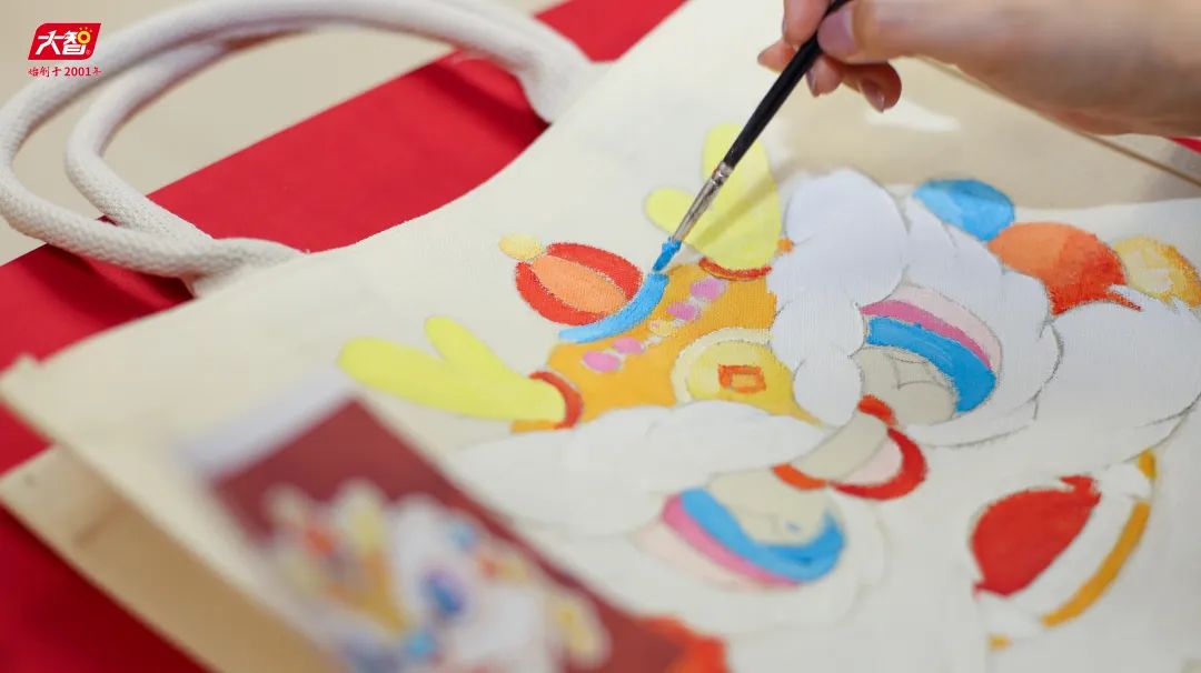 活動(dòng)現(xiàn)場(chǎng),大家在老師的指導(dǎo)下手繪了一個(gè)個(gè)精美的醒獅包,寓意來(lái)年吉瑞。