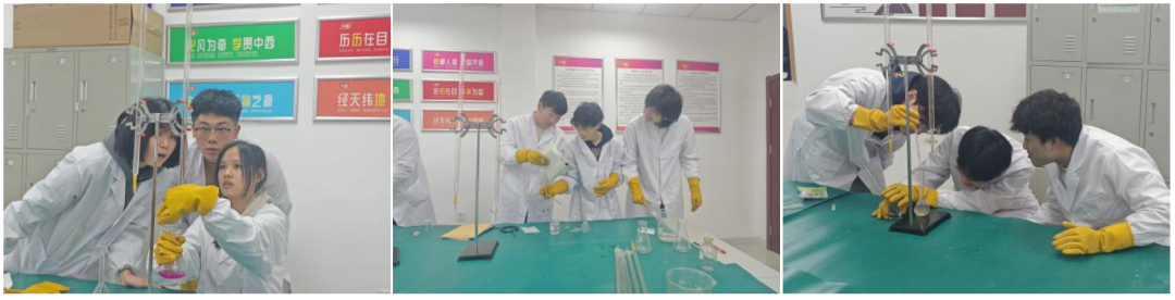 實驗通過三人合作互助形式展開,由學(xué)科導(dǎo)師講解所做實驗在高考中的重要地位以及考查形式,學(xué)生動手實驗操作,學(xué)科導(dǎo)師指導(dǎo)并規(guī)范其實驗操作步驟。學(xué)員不僅在宏觀層面上對化學(xué)實驗有整體認識,同時在中觀層面能夠明確實驗操作步驟,在微觀層面上細化實驗規(guī)范。學(xué)生們?nèi)硇耐度?,在操作中理解實驗理論,在實驗中梳理?guī)范流程,在創(chuàng)新中剖析實驗本質(zhì)。