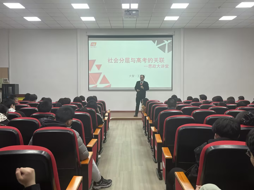 當(dāng)日下午的思政大講堂座無虛席,王所長(zhǎng)以《社會(huì)分層與高考的關(guān)聯(lián)》為題,用客觀的規(guī)律揭示教育流動(dòng)現(xiàn)狀,引導(dǎo)學(xué)生理性看待競(jìng)爭(zhēng)壓力,強(qiáng)調(diào)"高考既是選拔機(jī)制,更是自我突破的成長(zhǎng)儀式",現(xiàn)場(chǎng)互動(dòng)問答環(huán)節(jié)持續(xù)近半小時(shí)。 春潮澎湃,催人奮進(jìn);戰(zhàn)鼓轟鳴,奏響新程。系列課程創(chuàng)新融合心理疏導(dǎo)與社會(huì)認(rèn)知教育,既緩解了備考焦慮,更幫助學(xué)子構(gòu)建起支撐長(zhǎng)期發(fā)展的認(rèn)知框架,為沖刺階段注入持久動(dòng)力。大智高中補(bǔ)習(xí)學(xué)校將持續(xù)聯(lián)手陽光心態(tài)研究服務(wù)所,完善"心理+學(xué)業(yè)"雙軌賦能體系,助力2025高考學(xué)子圓夢(mèng)。投稿人:王文平