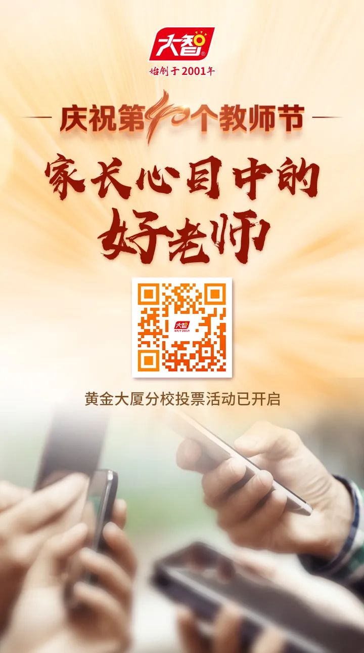 為慶祝第40個(gè)教師節(jié),通過(guò)選樹典型、表彰優(yōu)秀,持續(xù)提升教育教學(xué)質(zhì)量,服務(wù)更多學(xué)生,大智發(fā)起"家長(zhǎng)心目中的好老師"評(píng)選活動(dòng),歡迎各位家長(zhǎng)朋友為分校的老師們投出寶貴的一票,這一票既是您對(duì)我們工作的肯定,也是一份鼓勵(lì),我們將帶著這份信任在高質(zhì)量育人道路上持續(xù)提升。