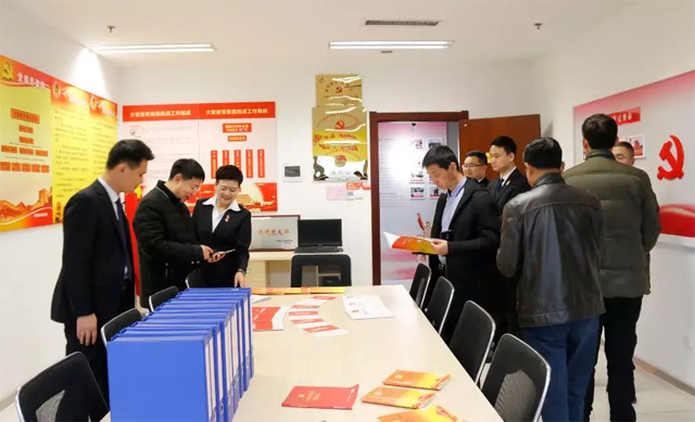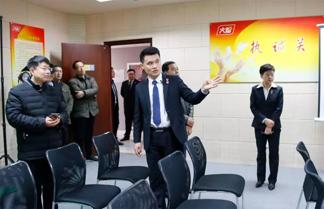 李開(kāi)良一行首先參觀了大智控股集團(tuán)總部,從整體上了解了大智的發(fā)展歷程與企業(yè)文化,重點(diǎn)了解了大智“智惠黨建一三九”工作模式以及黨建引領(lǐng)下的大智 “一帶一促”群團(tuán)建設(shè)理念和“智惠+”群團(tuán)建設(shè)模式。