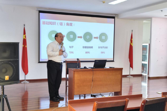 培訓(xùn)中,張朋從理論和實踐兩個層面對威海四中“低、慢、小、精”的課改理念和“三個中心”課改原則進行深刻剖析:理論層面從基礎(chǔ)知識(鏈)角度、基礎(chǔ)題型(鏈)角度、基本能力(鏈)角度論證了“低、慢、小、精”課改理念的合理性和科學(xué)性;實踐層面基于威海四中學(xué)情和自身經(jīng)驗,從“基礎(chǔ)知識認(rèn)知弱、基本題型缺定法、基本能力憑感覺、語言態(tài)度糾偏少、寫作從無范文感”五大維度論證學(xué)?!皞湔n以學(xué)生為中心、上課以活動為中心、作業(yè)以雙基為中心”課改實踐原則的合理性和科學(xué)性。