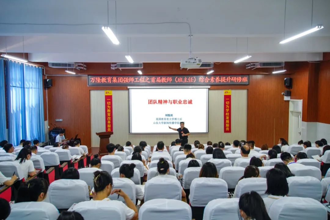 隨著基礎(chǔ)教育改革的不斷深入,對教師的素質(zhì)素養(yǎng)提出了更高的要求,為切實提升夏津萬隆教育集團教師隊伍解決實際問題的能力,提高團隊執(zhí)行力,劉悅坦教授帶來《高效團隊與卓越執(zhí)行打造》主題分享。