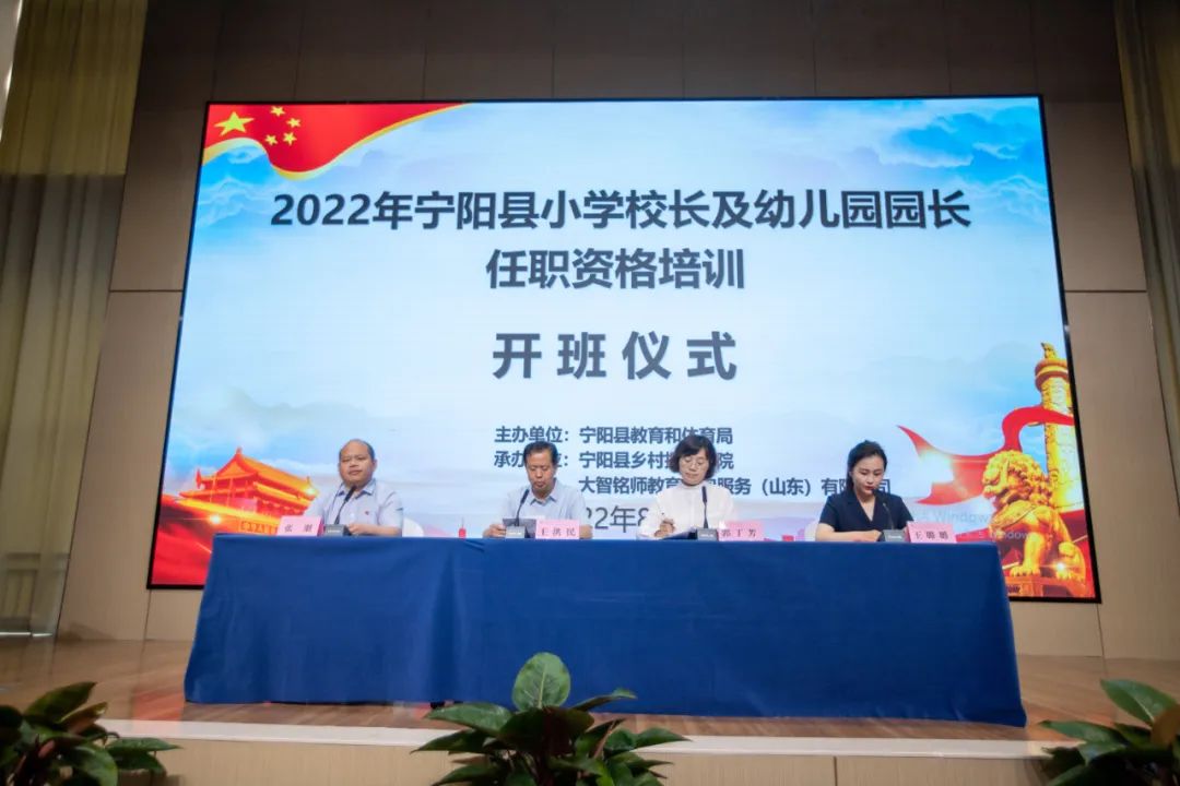8月11日上午,寧陽縣小學(xué)校長(zhǎng)及幼兒園園長(zhǎng)任職資格培訓(xùn)班開班典禮在寧陽縣蔣集鎮(zhèn)友邦花園酒店彩山廳舉辦。寧陽縣教育和體育局教科研中心王洪民書記,寧陽縣教育和體育局教師工作科郭丁芳科長(zhǎng),寧陽縣縣鄉(xiāng)村振興學(xué)院綜合科王璐璐科長(zhǎng),大智銘師負(fù)責(zé)人張朋參加。