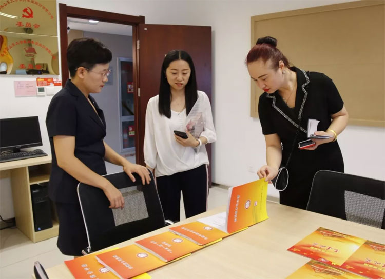 07月27日,山東中維中豪大酒店袁芳副總經(jīng)理等“兩新”組織黨建代表一行蒞臨大智交流考察黨建工作。