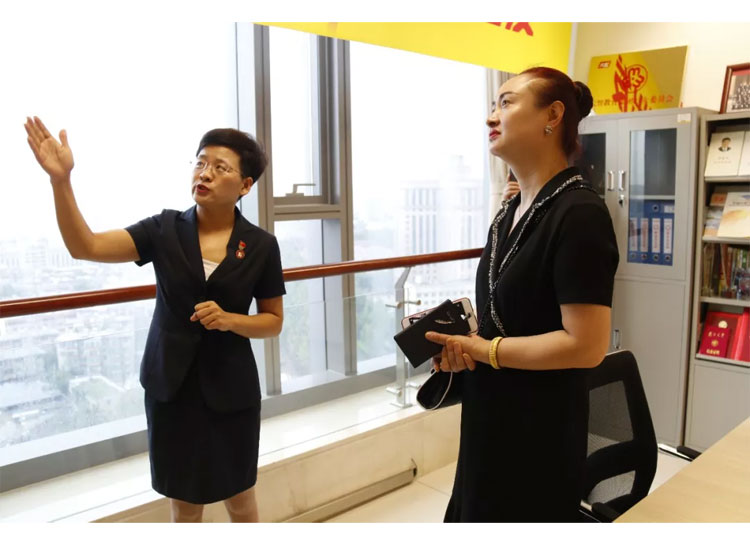 王現(xiàn)芹帶領(lǐng)大家參觀了大智控股集團(tuán)總部,向大家闡釋了大智“智惠黨建”系統(tǒng)、“一三九”黨建工作模式和大智“一帶一促”群團(tuán)建設(shè)模式。