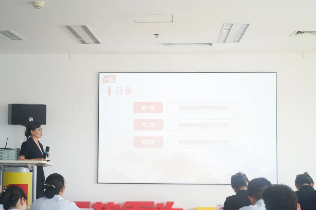 大智控股集團(tuán)黨委委員王艷艷為黨員們帶來(lái)《團(tuán)結(jié)一致干事業(yè)》主題黨課,號(hào)召大家牢記使命,勇于擔(dān)當(dāng),在團(tuán)結(jié)奮進(jìn)中開(kāi)創(chuàng)轉(zhuǎn)型新局面,為事業(yè)發(fā)展貢獻(xiàn)崗位價(jià)值!