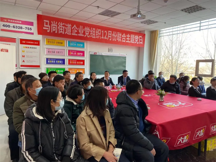 為扎實(shí)推進(jìn)黨建工作,進(jìn)一步增強(qiáng)黨組織凝聚力和黨員責(zé)任感。12月25日,馬尚街道企業(yè)黨組織12月份聯(lián)合主題黨日在大智淄博區(qū)域張店分校成功舉辦。