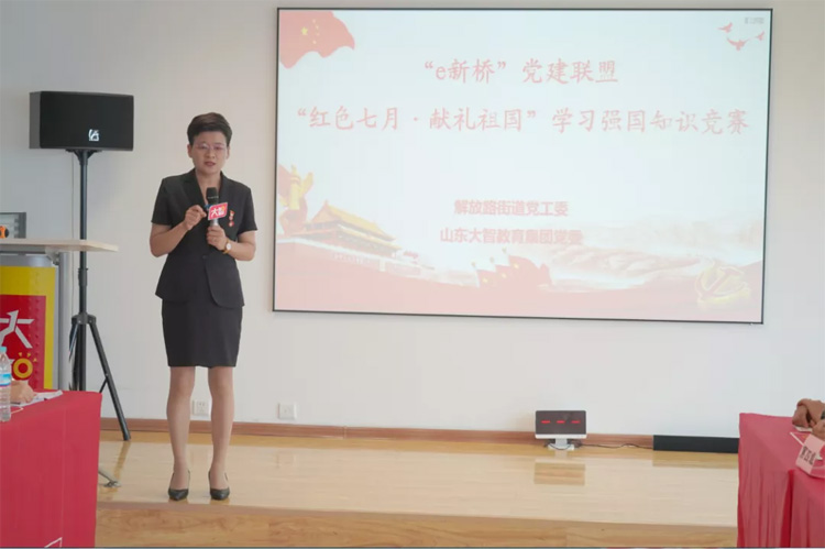 大智控股集團(tuán)黨委書記王現(xiàn)芹現(xiàn)場(chǎng)勉勵(lì)參賽選手,作為黨員要堅(jiān)定不移的學(xué)習(xí)進(jìn)步,利用“學(xué)習(xí)強(qiáng)國”平臺(tái)豐富的內(nèi)容充實(shí)自身,同時(shí)要珍惜“e新橋”黨建聯(lián)盟提供的每一次成長(zhǎng)機(jī)會(huì),互相借鑒,取長(zhǎng)補(bǔ)短,共同進(jìn)步。