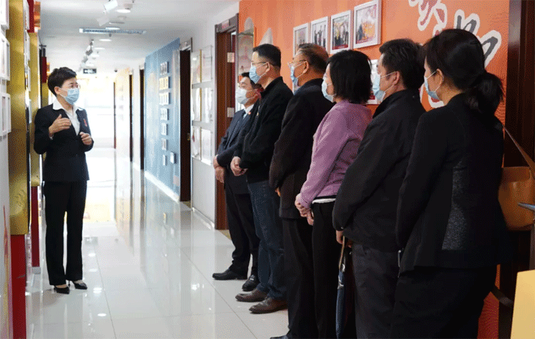 王現(xiàn)芹帶領(lǐng)大家參觀了大智黨群陣地,詳細介紹了大智“智惠黨建一三九”工作模式以及黨建引領(lǐng)下的大智 “一帶一促”群團建設理念和“智惠+”群團建設模式。