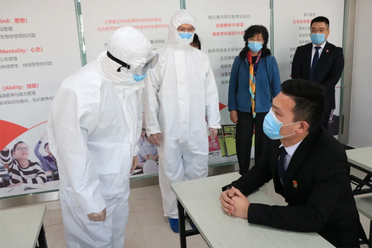 演練開始前,閃電救援隊(duì)首先給臨沂區(qū)域教職員工詳細(xì)培訓(xùn)了疫情突發(fā)事件應(yīng)急處理知識,幫助大家明確了疫情防控的規(guī)范程序。