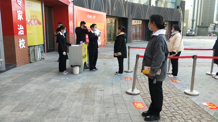 演習(xí)前,大智東營區(qū)域組織全體教職員工認(rèn)真學(xué)習(xí)了《山東省中小學(xué)校 2020 年春季學(xué)期開學(xué)條件核驗細(xì)則》和《東營市教育培訓(xùn)機構(gòu)疫情防控工作指導(dǎo)手冊》。深入貫徹文件精神,本次演練包含“列隊測溫入校、測溫疫情突發(fā)事件應(yīng)急處理、課堂疫情突發(fā)事件應(yīng)急處理”3個項目,共10個環(huán)節(jié)。演習(xí)中,大家嚴(yán)格貫徹各項要求,針對應(yīng)急事件進行了細(xì)節(jié)處理,完成了針對性防控。