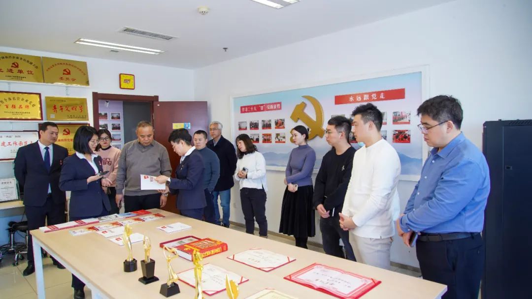 參觀黨員活動(dòng)室,翻閱查看大智黨建相關(guān)資料。