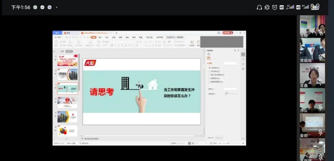 首先,王現(xiàn)芹用問題拋磚引玉:“當(dāng)工作和家庭發(fā)生沖突時(shí)你該怎么辦?”隨后,王現(xiàn)芹從家庭與工作的關(guān)系、平衡家庭與工作的小技巧兩個方面,結(jié)合自身的實(shí)踐和經(jīng)歷,為大家詳細(xì)講解了該如何正確處理工作和家庭的關(guān)系。