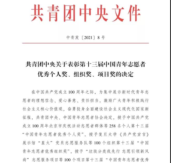 在第36個國際志愿者日來臨之際,共青團中央、中國青年志愿者協(xié)會作出表彰,大智智學智愛志愿服務隊盧濟南獲第十三屆中國青年志愿者優(yōu)秀個人獎。